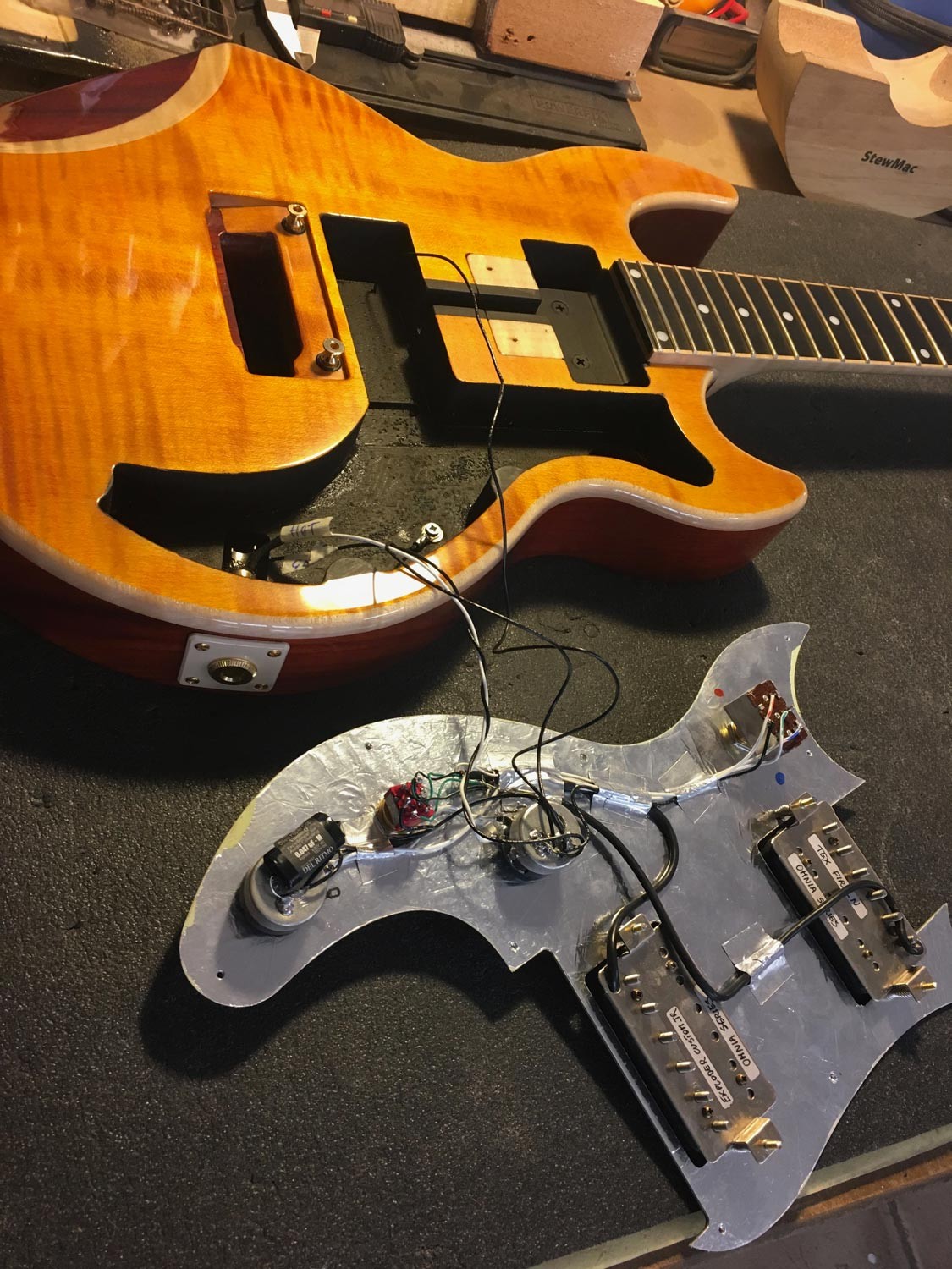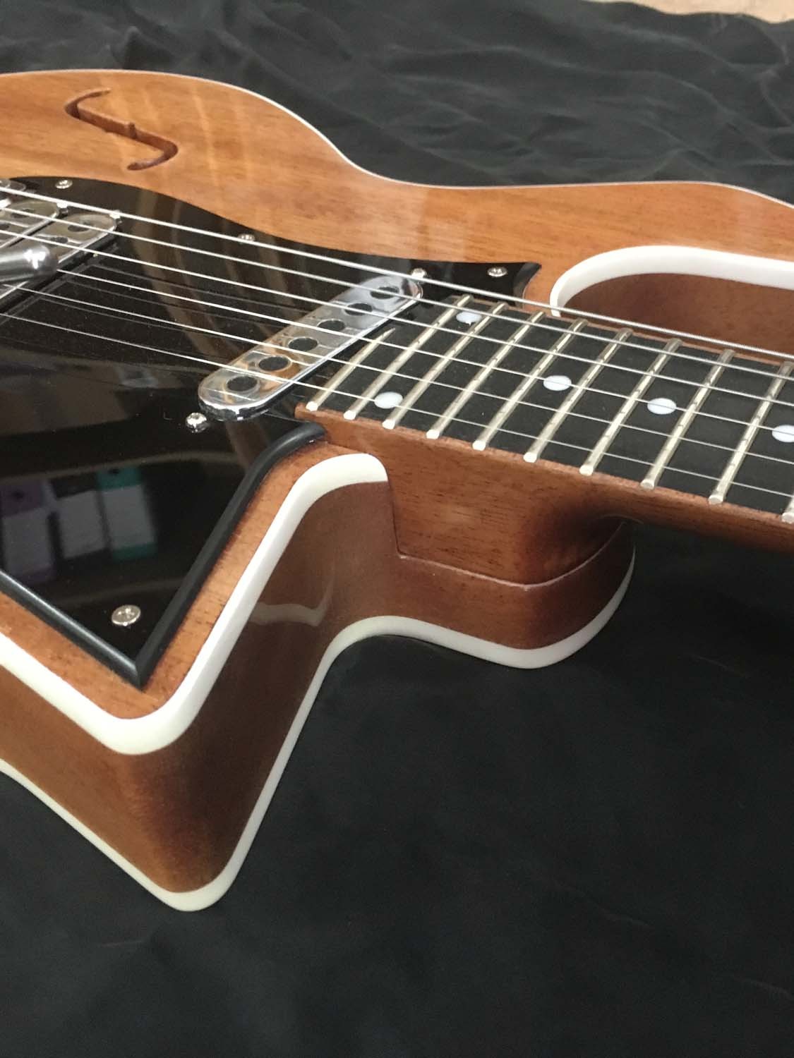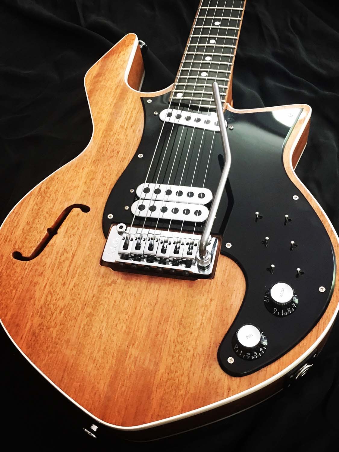 Una Virtus tributo alla gloriosa "Red Special" di Brian May. Realizzata interamente in mogano, con camere tonali, pick-up Burns ed elettronica fedele all'originale.
