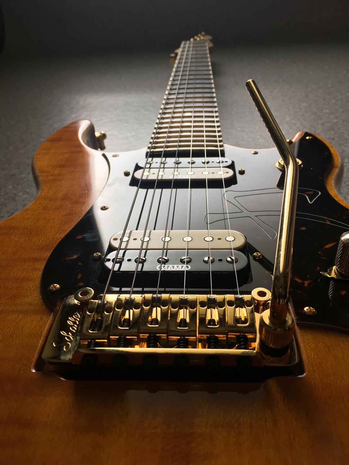 Una Pandora "Special" a 24 tasti, corpo in Padouk, tasti Jescar Evo-Gold con dimensioni differenziate per ottava (la prima jumbo, la seconda narrow) e hardware dorato.