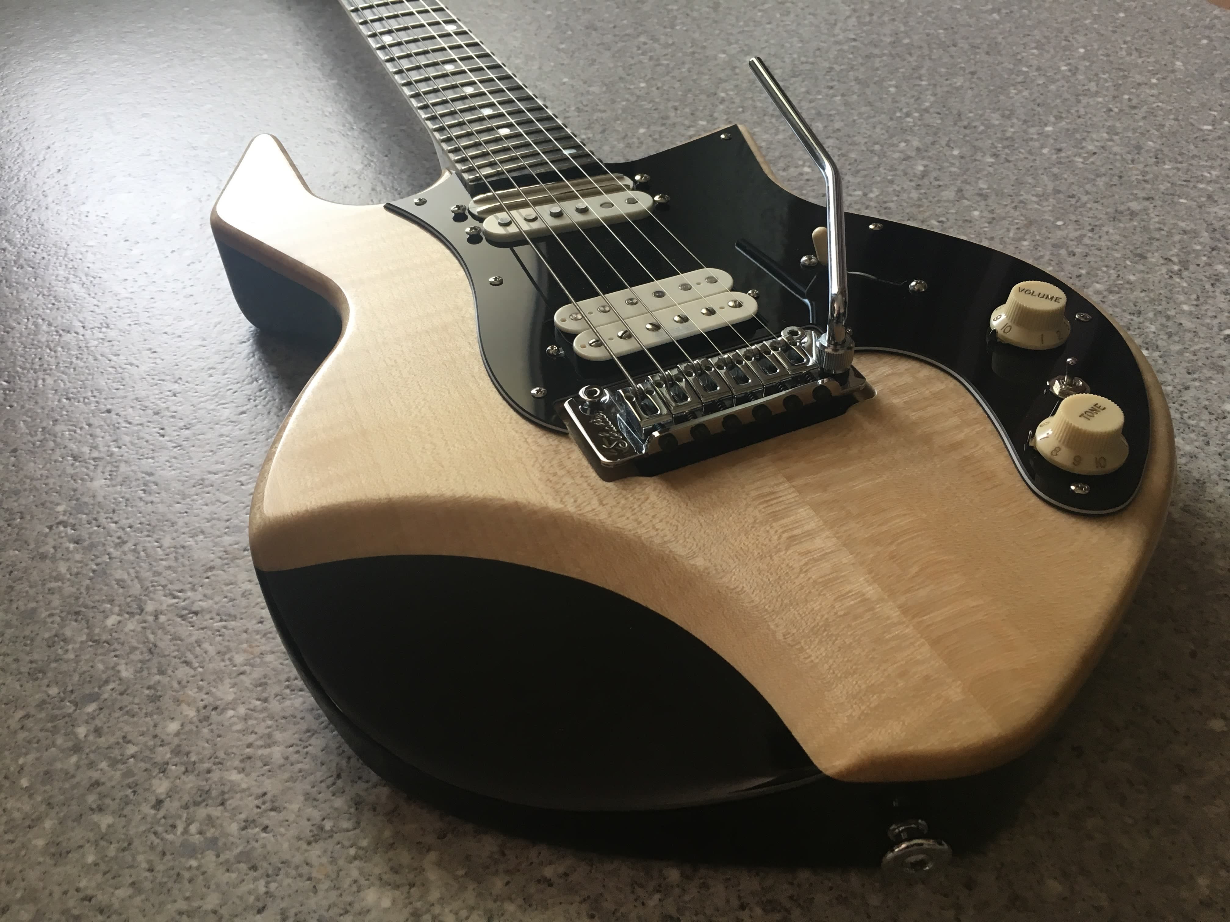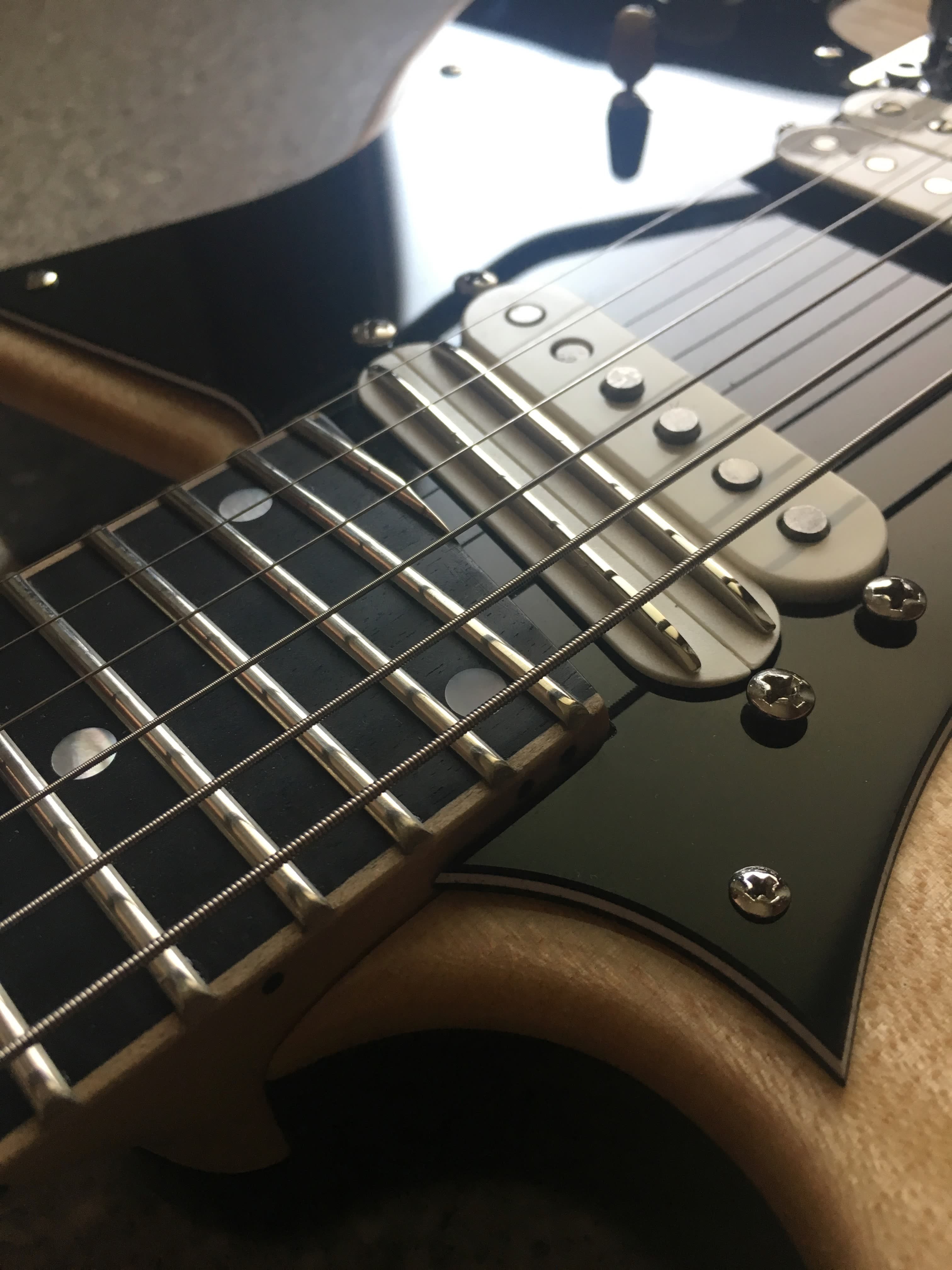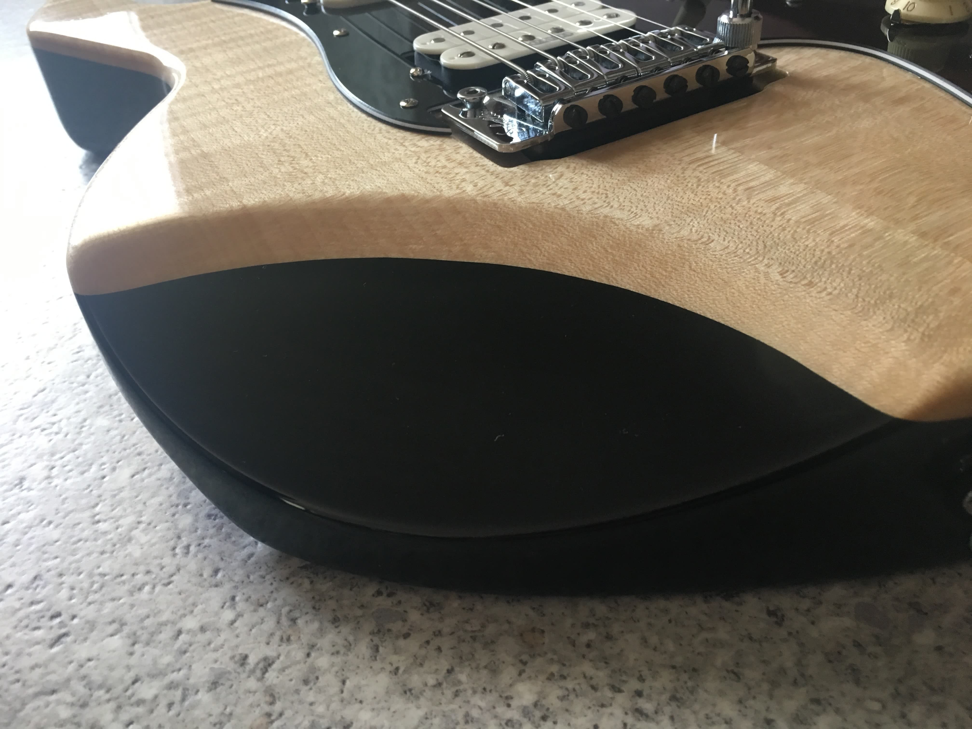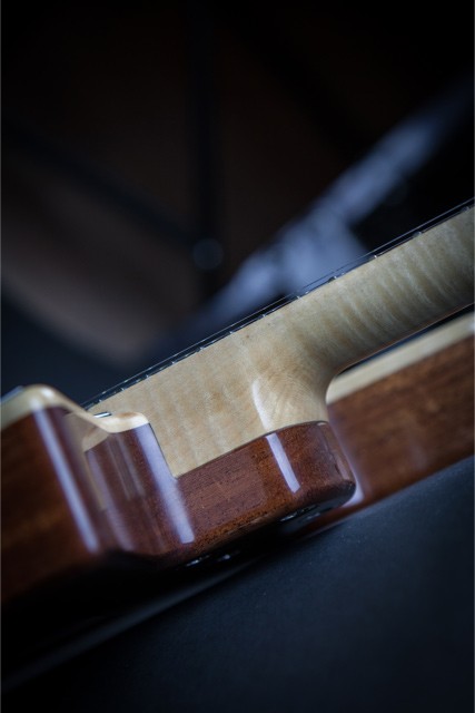 -Tastiera in ebano/ ebano macassar incassata all’interno della tavola di acero, lasciando un binding naturale
